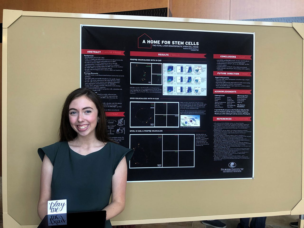 Elaine Zhu presents her poster at Summer Scholar Presentation Day