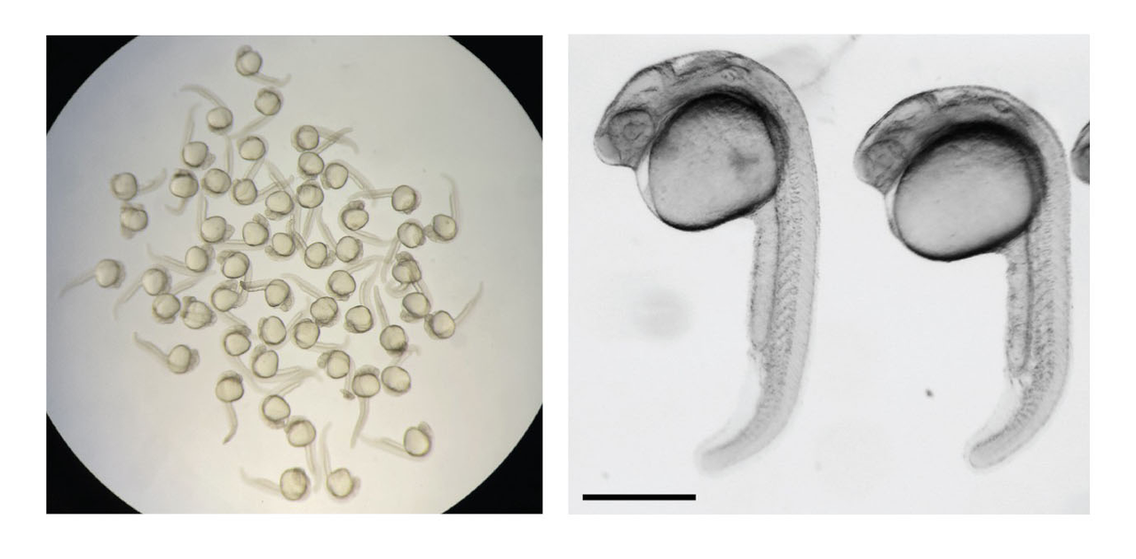 Developing zebrafish embryos.