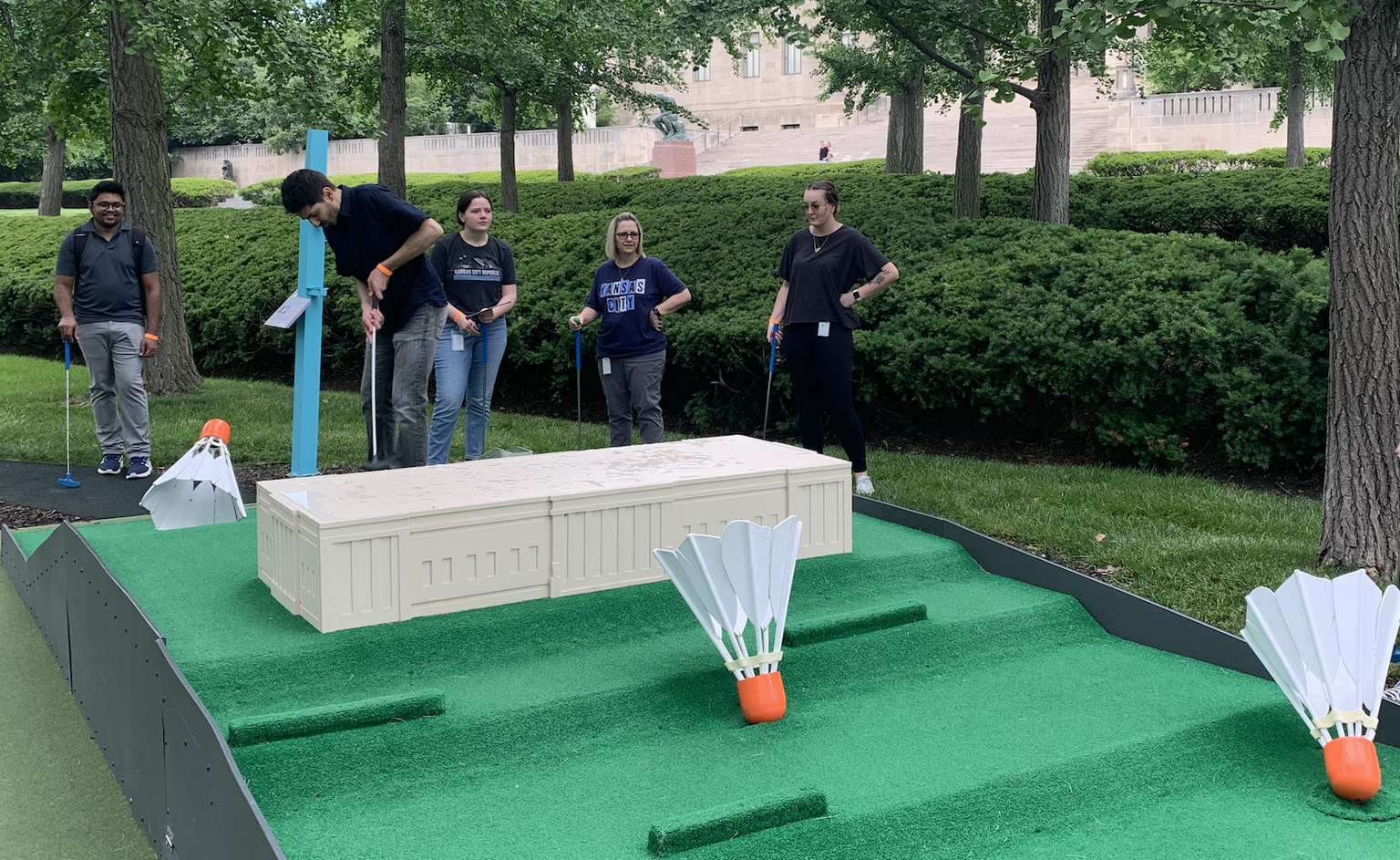 The Ozel Lab recently went on a team building adventure to the nearby Nelson-Atkins Museum of Art. We played the museum's art-themed mini-golf ArtCourse, had a pizza picnic at a nearby park, and a well-timed ice cream truck provided popsicles, which really hit the spot (unlike our golfballs!)