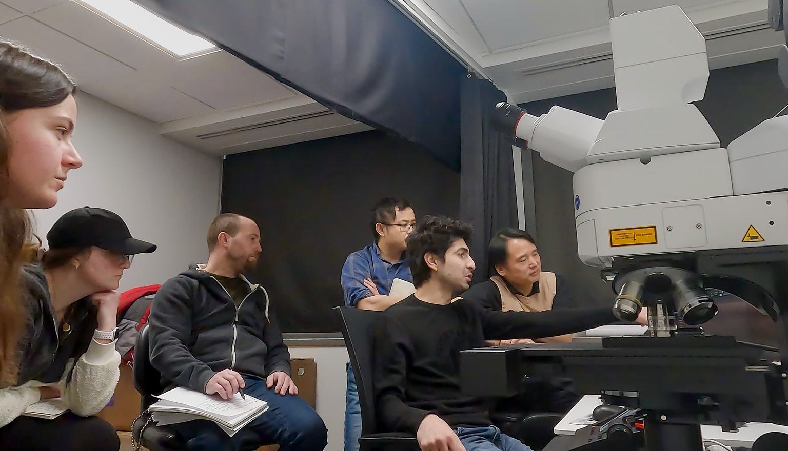Microscopy is the technical discipline of using microscopes to image very small structures that we simply cannot see by eye. There are many types of microscopy, which can be broadly categorized as either light microscopy or electron microscopy. In light microscopy, beams of light are used to illuminate and magnify the sample. In electron microscopy, beams of electrons are used instead. The new microscope in the Özel Lab is an advanced type of light microscope that is specially designed for high-resolution imaging of fluorescent molecules in biological samples.