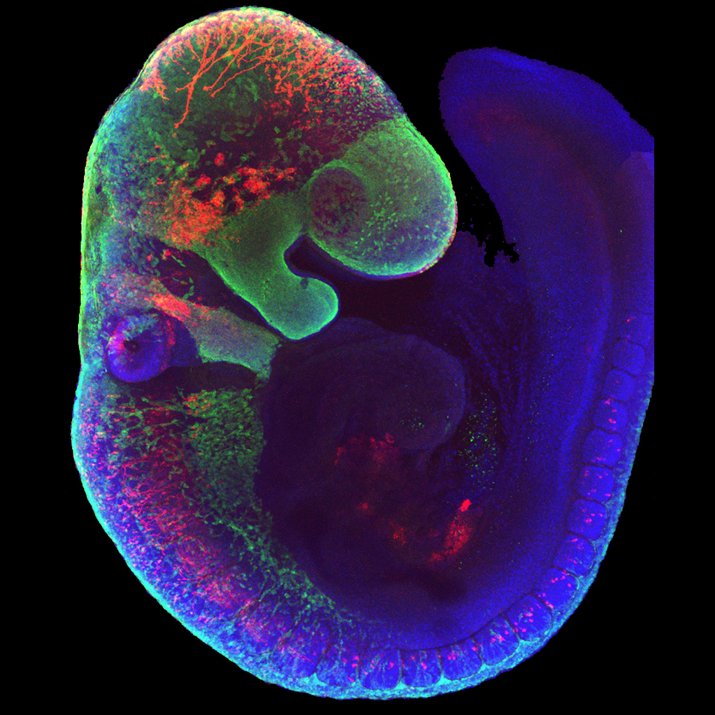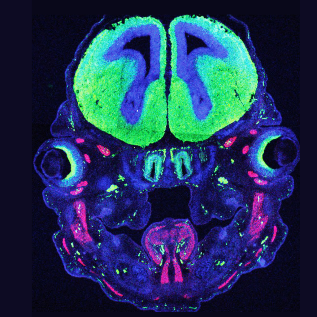 The Trainor Lab studies neural crest cells, cells which form in early development across research organisms, such as mouse, zebrafish, and chameleons. These cells migrate from the primitive embryonic brain and spinal cord to form the face, heart, and gut. Neural crest cells generate much of the bone, cartilage, and connective tissue of the head and face as well as neurons and glia in the peripheral nervous system.