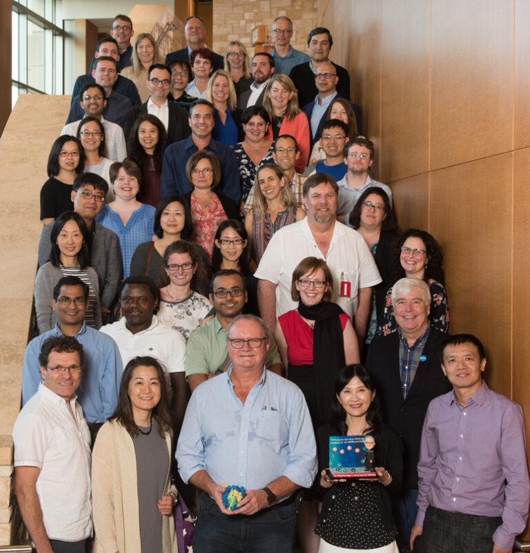 First Row (from left to right): Jacques Cote, Tamaki Suganuma, Jerry Workman, Li-Jung Juan, Bing Li. Second row: Chhabi Govind, Gerald Dayebgadoh, Saikat Bhattacharya, Mischa Smolle, Michael Carey. Third row: Chun Ruan, Jelly Soffers, Chia-Hui Lin, Hugh Patterton, Samantha Pattenden. Fourth row: Daeyoup Lee, Fu Huang, Amber Mosley. Fifth row: Leanne Well, Kerstin Bystricky, Rhea Utley. Sixth row: Ceci (Ge) Li, Xuanying Li, Jae Hyoun Lee, Michael Kladde, Marissa Vignali, David Steger, Soon-Keat Ooi, Mark Adams. Seventh row: Arnob Dutta, Cedric Clapier, Christine Brown, LeAnn Howe, Vikki Weake. Eighth row: Michael Vermeulen, Seunghee Oh, DeeDee Balkus, Kenneth Witwer, Ryan Mohan. Ninth row: Michael Church, Kristen Hurov (Neely), Marilyn Pray-Grant, José Leonardo Gutiérrez. Back row: Patrick Grant, Christopher Adams, Tom Owen-Hughes.