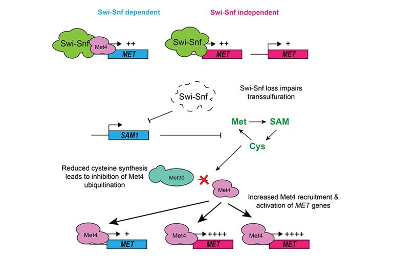 One well-known chromatin remodeler involved in transcriptional activation is Swi-Snf, which is a multi-subunit protein complex that regulates gene expression in eukaryotes as diverse as humans and budding yeast. Our work has shown that yeast Swi-Snf is critical for activating a subset of metabolic genes required for synthesis of the sulfur-containing amino acid cysteine, and that loss of this function leads to widespread metabolic and transcriptional defects within cells. This work demonstrates that Swi-Snf has a direct role in metabolic regulation. Current efforts in the lab focus on exploration of this role and determination of its applicability to human biology and disease.