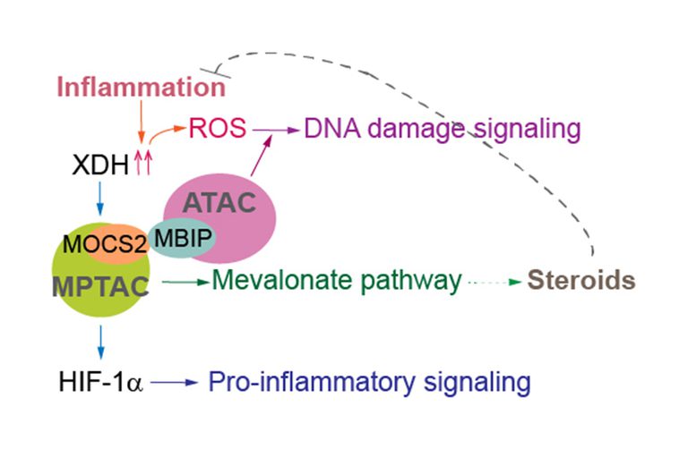 Recently, we found that stabilization of the mismatch repair (MMR) protein MSH6 in response to alkylation damage requires MSH6 interactions with the ATAC and MPTAC (the molybdopterin synthase associating complex). MSH6 promotes sterol biosynthesis via the mevalonate pathway in an ATAC- and MPTAC-dependent manner. Therefore, the association between MMR proteins, ATAC, and MPTAC promotes sterol biosynthesis, leading to an anti-inflammation response. Importantly, interaction between MSH6 and ATAC was lost, destabilizing MSH6, in cells from some Fragile X-associated disorders (FXD) patients. In other FXD cells, MPTAC is disrupted. Thus, our studies suggested that impairment of ATAC and MPTAC may cause DNA alkylation damage resistance in some FXD patients.