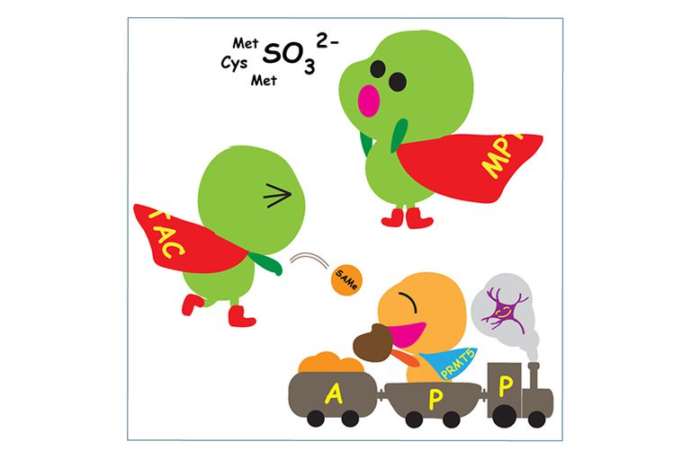We discovered that MPT synthase (a heterotetramer of MOCS2A and MOCS2B dimers) is in a 274 kDa cytoplasmic complex called MPT synthase associating complex (MPTAC). Due to the observations of increases in the levels of cysteine and homocysteine and decreases in the expression levels of sulfite oxidase (SUOX) in MOCS2 knockdown cells, MPTAC was found to regulate sulfur amino acid catabolism, in which SUOX catalyzes the terminal step, preventing accumulation of sulfite (SO32–) and reactive oxygen species (ROS).The association of MPTAC with PRMT5 arginine methyltransferase complex and SNRPs splicing factors enables SNRPs to sense the metabolic states through their methylation. This promotes the splicing fidelity of APP pre-mRNA and proper APP fragmentation, abnormalities of which have been observed in the platelets of Alzheimer’s disease (AD) patients. The functions of MPTAC are crucial to maintain expression of drebrin 1, which is required for synaptic plasticity. Hence, MPTAC prevents events that occur in the onset of AD.